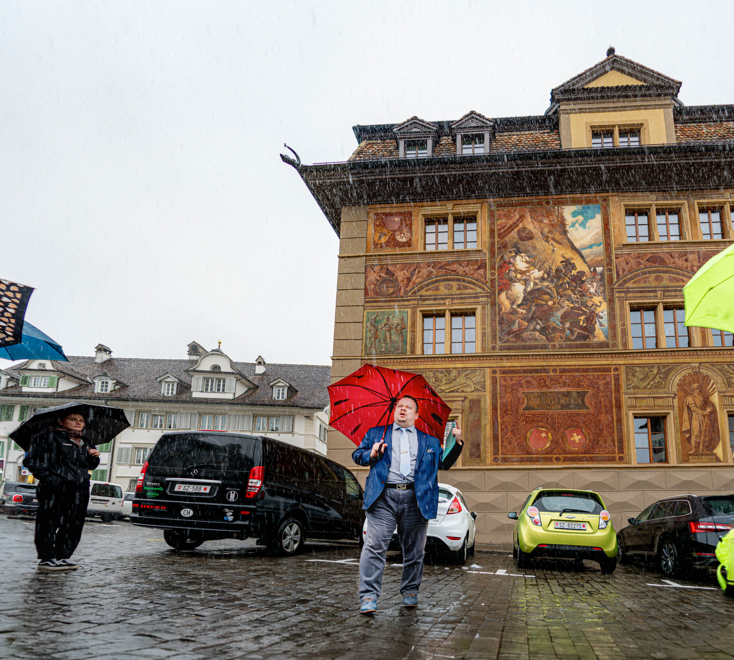 Der bekannte und engagierter Regierungsrat Xaver Schuler leistet nicht nur als Vorsteher des Sicherheitsdepartments tolle Arbeit leisten, sondern wäre auch ein sehr talentierter Geschichtslehrer, der es schafft mit Herzblut und bildlicher Sprache jeden Zuhörer für die Entstehung der Eidgenossenschaft und Geschickte des Schwyzer Söldnertums zu inspirieren. Bei seinen Ausführung zu den vielen historischen Details im und um das Rathaus herum, blendet man auch ein intensiven Schneeregen für eine halbe Stunde komplett aus und befindet sich in Gedanken mehrere Hundert Jahre zurück, live am Geschehen der entscheidenden Momente, welche das heutige Leben der Innerschwyzer und der gesamten Schweiz massgebend geprägt haben.