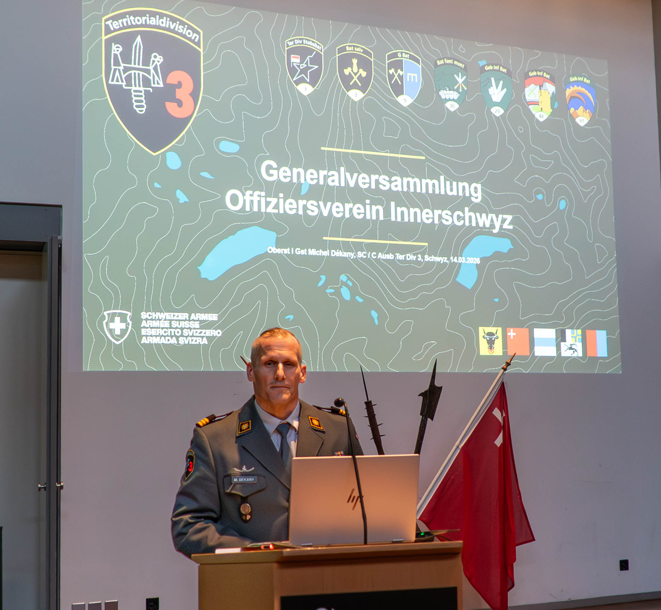 Einmal mehr wird durch das Referat von Obert i Gst Michel Dékany, Chef Ausbildung der Territorialdivision 3, die Dringlichkeit zum Ausrüsten und Modernisieren der Armee unterstrichen. Die tragischen Entwicklungen im sicherheitspolitischen Bereich auf der Ganzen Welt lassen keine Nation mehr ruhig schlafen. Die neuen und hybriden Bedrohungen sind allgegenwärtig und viel schwieriger zu fassen als ‘konventionelle’ Konflikte der Vergangenheit. Dazu kommt, dass die Technologie sich rasant verändert und gerade in Kriegsgebieten wie der Ukraine die Akteure zwingen, innert Tagen bis maximal Wochen sich an neue Taktiken anzupassen. Oft sind es technologische und materielle Anpassungen, welche in unserem politischen System derzeit Jahre dauern.